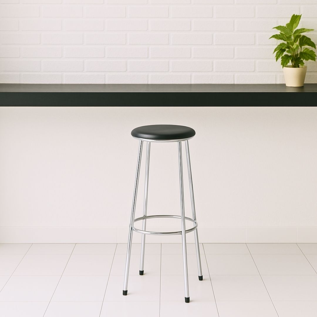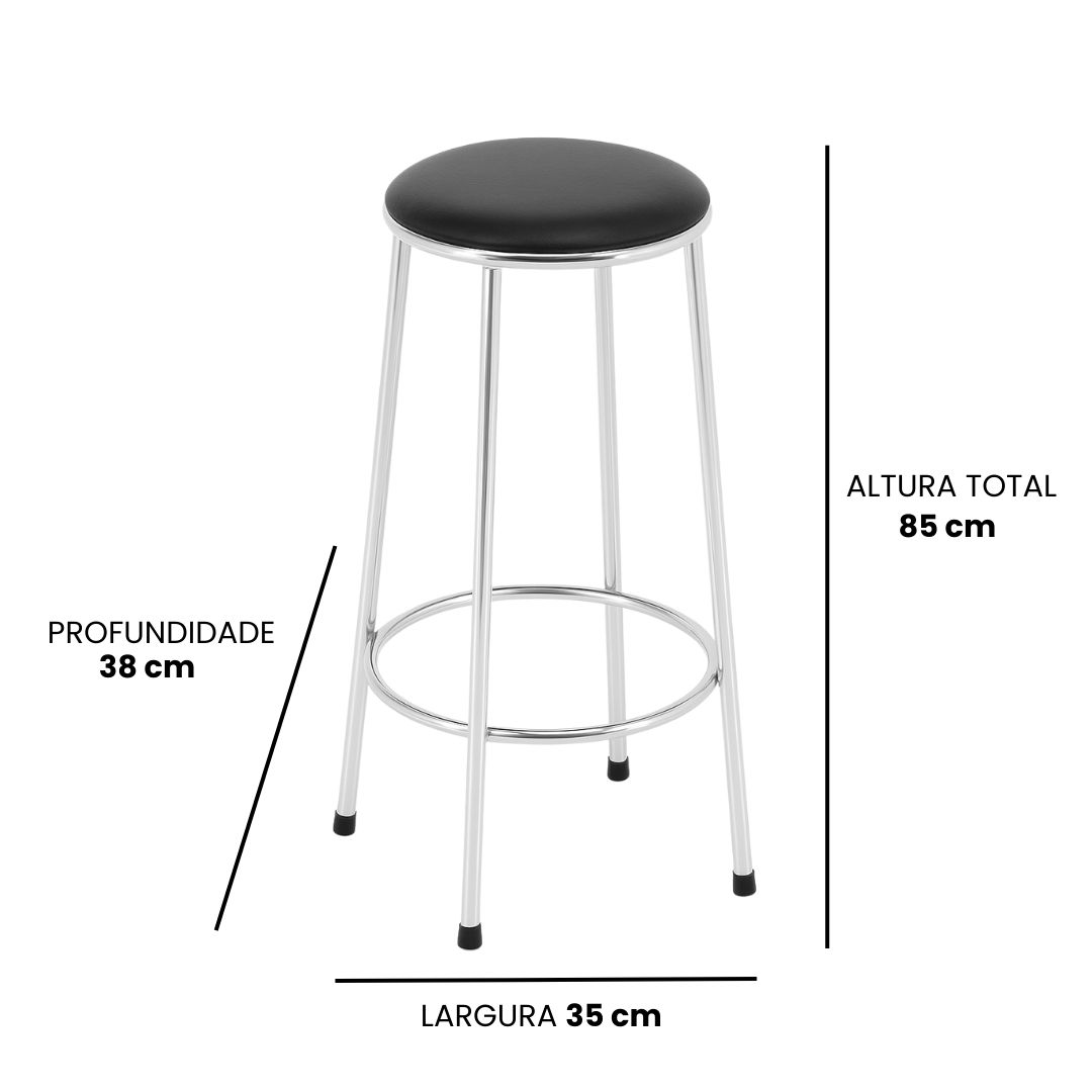 Produzida com materiais de alta qualidade, sua estrutura é fixa, confeccionada em tubo de 3/4 polegada, disponível nas opções de acabamento preto, alumínio, cinza ou cromado. Seu assento ergonômico garante conforto e praticidade para bancadas e áreas de trabalho elevadas.