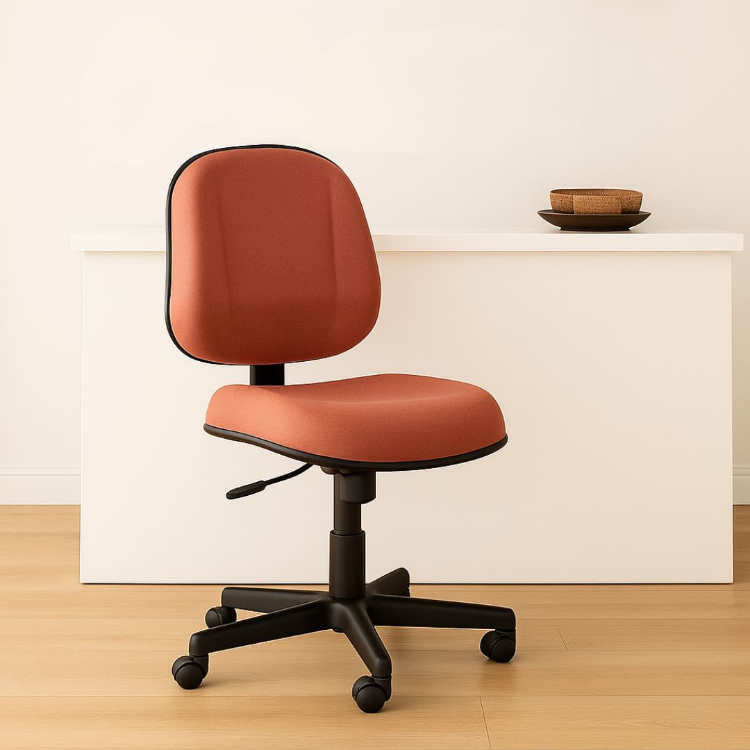 A estrutura com base giratória preta a gás oferece mobilidade sem abrir mão da estabilidade. O encosto ergonômico proporciona apoio adequado à coluna, incentivando a postura correta durante o expediente.