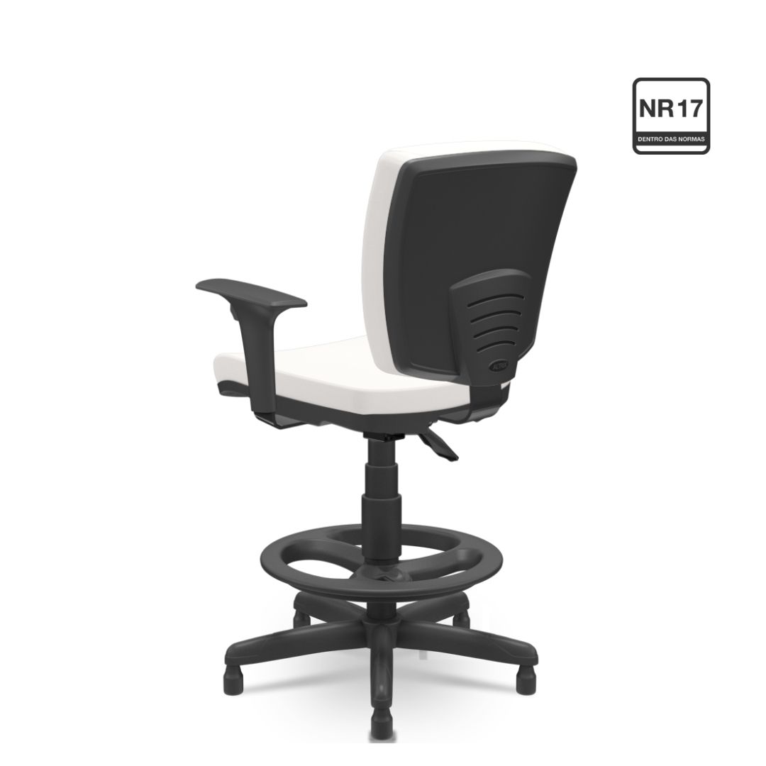 Indicada para ambientes industriais, administrativos, laboratórios e postos de atendimento, essa cadeira reforça o compromisso com a NR-17, promovendo uma postura correta e conforto durante longas jornadas. Sua base é equipada com sapata para estabilidade e possui estrutura robusta, garantindo durabilidade e segurança no uso diário.