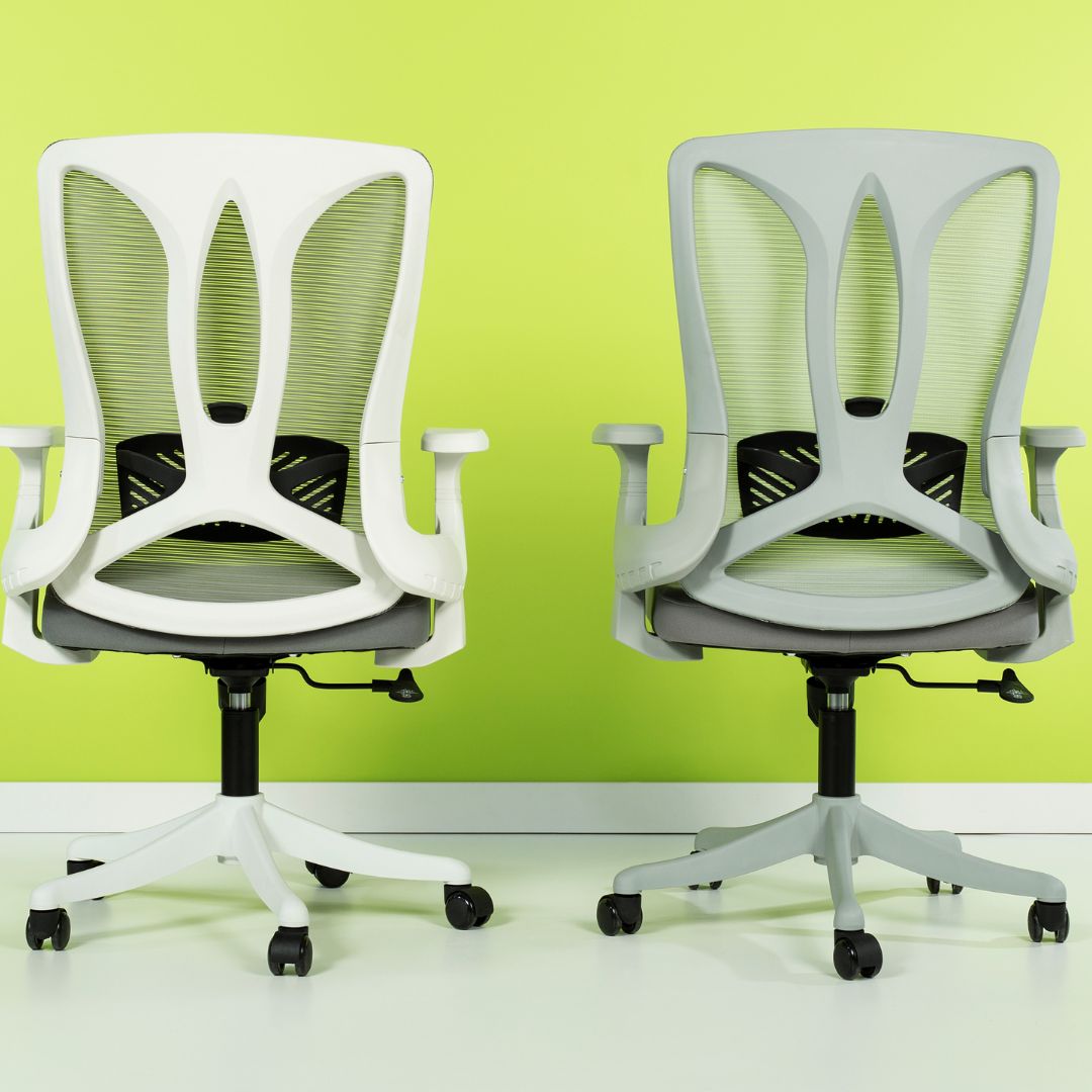 - Conforto e Ergonomia: Encosto em tela de nylon com poliéster e apoio lombar ajustável, proporcionando suporte ideal para longas horas de trabalho.