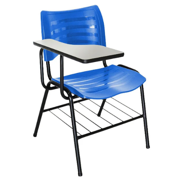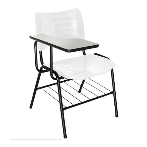 A estrutura da cadeira, composta por um tubo 7/8, confere robustez e estabilidade. Além disso, a presença de um porta livros adiciona funcionalidade, oferecendo um espaço conveniente para armazenar materiais, como livros ou cadernos. Disponível em diferentes opções de pintura, como preto, cinza, alumínio e branca, a estrutura permite uma integração personalizada ao estilo do ambiente.