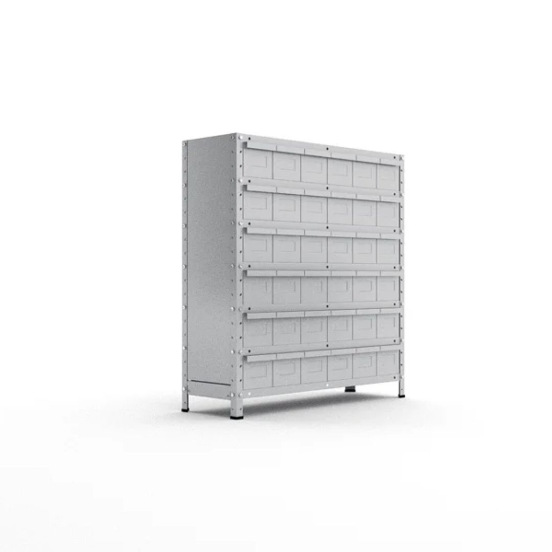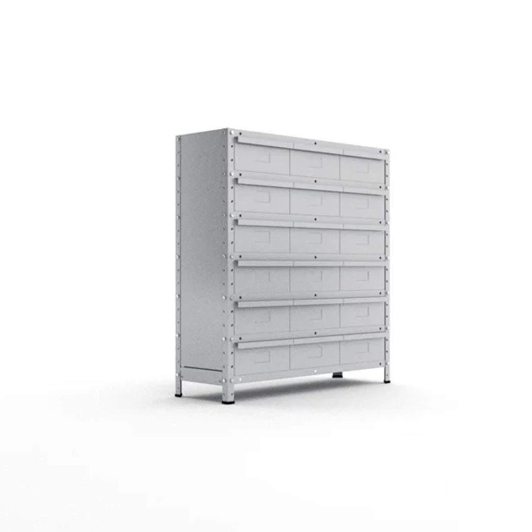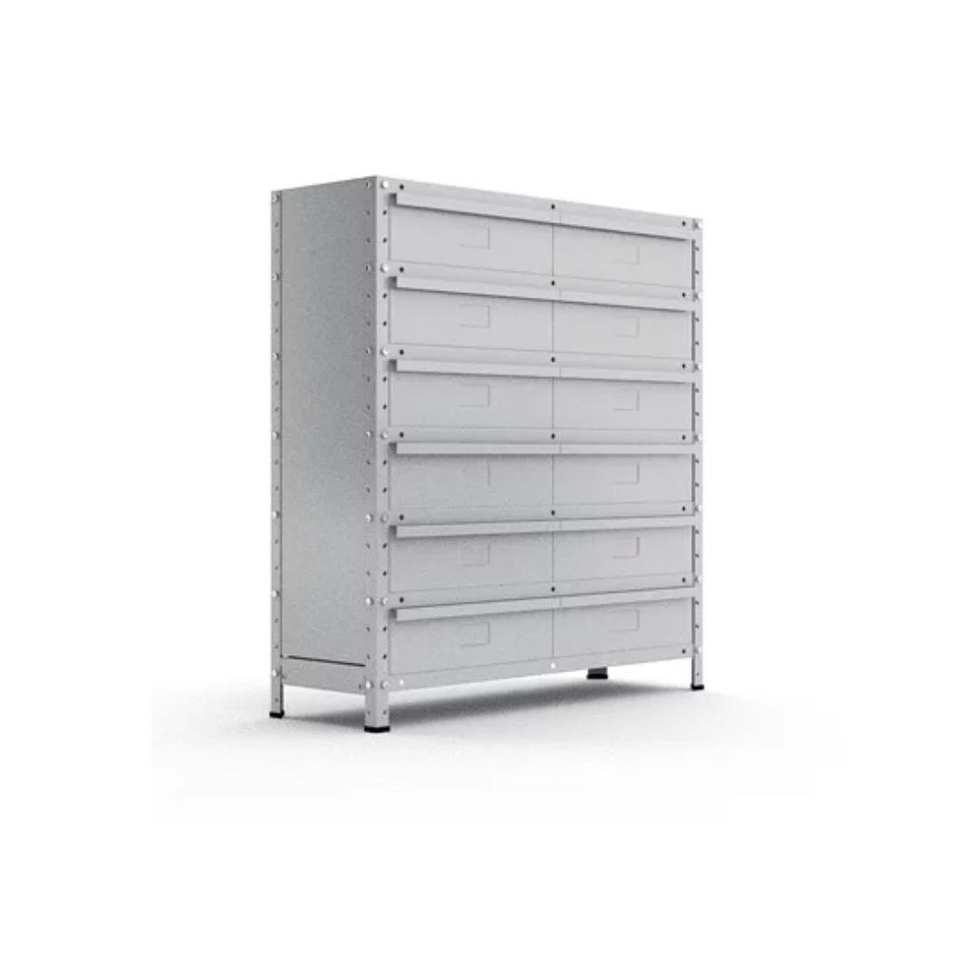 Você pode escolher entre diferentes configurações, com 12, 18, 24 ou 36 gavetas, adaptando a estante às suas necessidades específicas. Além disso, ela está disponível em duas profundidades: 30 cm e 42 cm, oferecendo flexibilidade para se ajustar ao seu espaço.