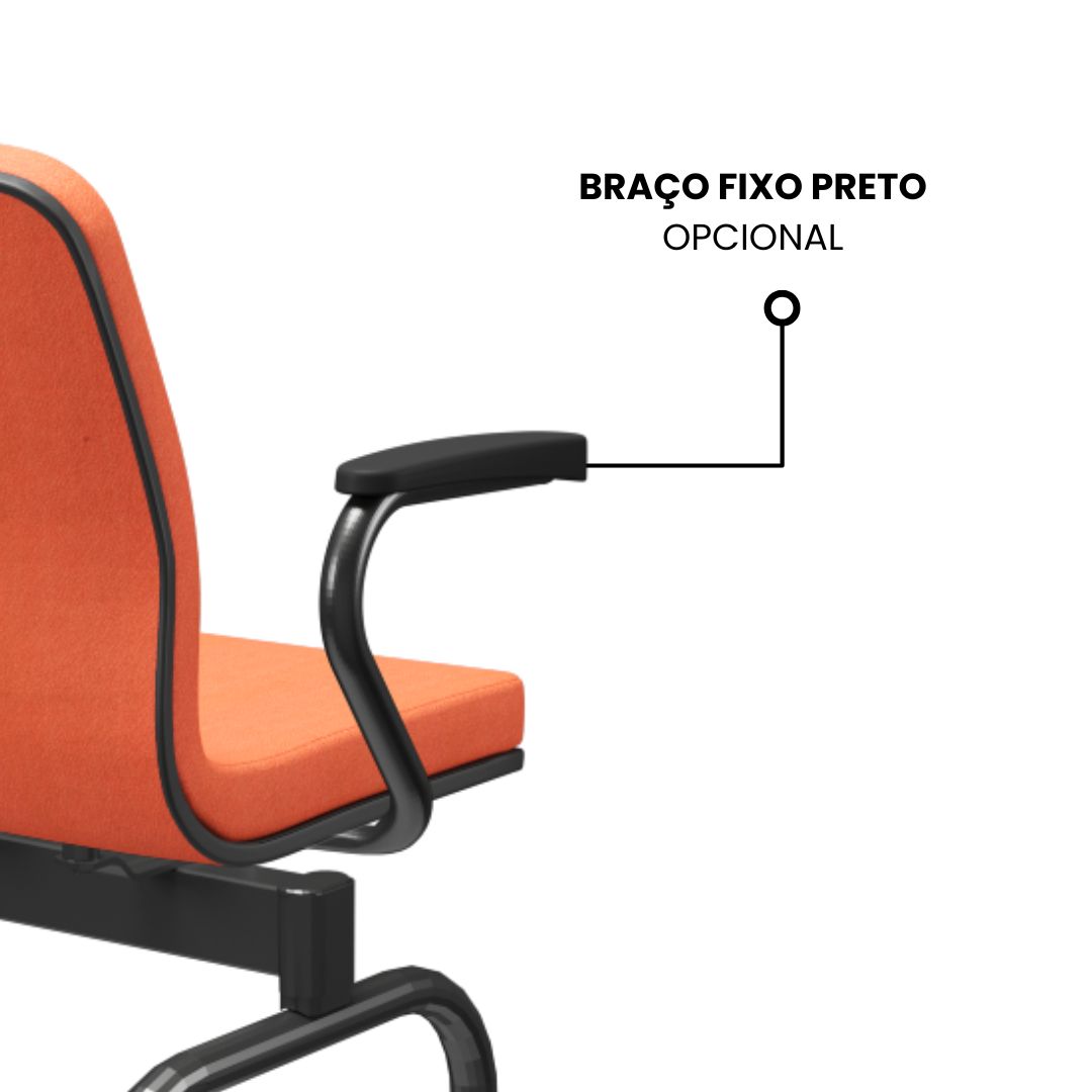 Sua estrutura é fabricada em metal resistente, disponível com acabamento preto ou cromado, garantindo sofisticação e robustez. O assento e o encosto fixo são confeccionados em poliéster de alta qualidade, com diversas opções de revestimento, incluindo couríssimo, couro ecológico, vinil, granitê, panamá, polipropileno e space. Essa variedade permite personalização de acordo com a identidade visual do ambiente corporativo.