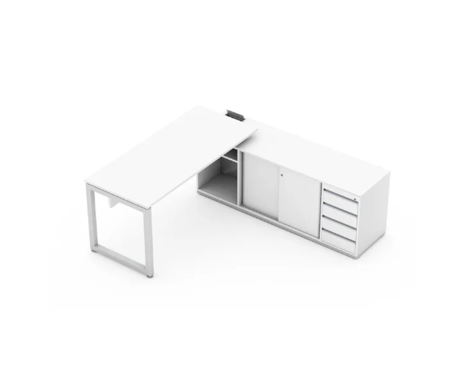 - Mesa com Armário de Portas de Correr e Gaveteiro (03 Gavetas): Uma opção elegante que apresenta portas de correr para um armário discreto, além disso, possui um gaveteiro espaçoso para manter itens organizados.