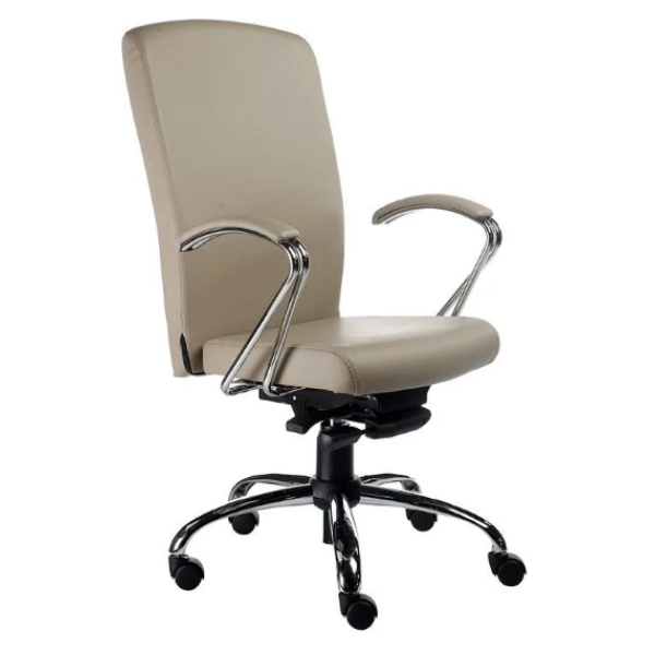 Nossa renomada Poltrona Majesty Presidente combina sofisticação e funcionalidade de forma inigualável. Com braços fixos detalhados em cromado e um revestimento especialmente projetado para a área de contato com o usuário, proporcionamos uma experiência única de conforto e elegância.