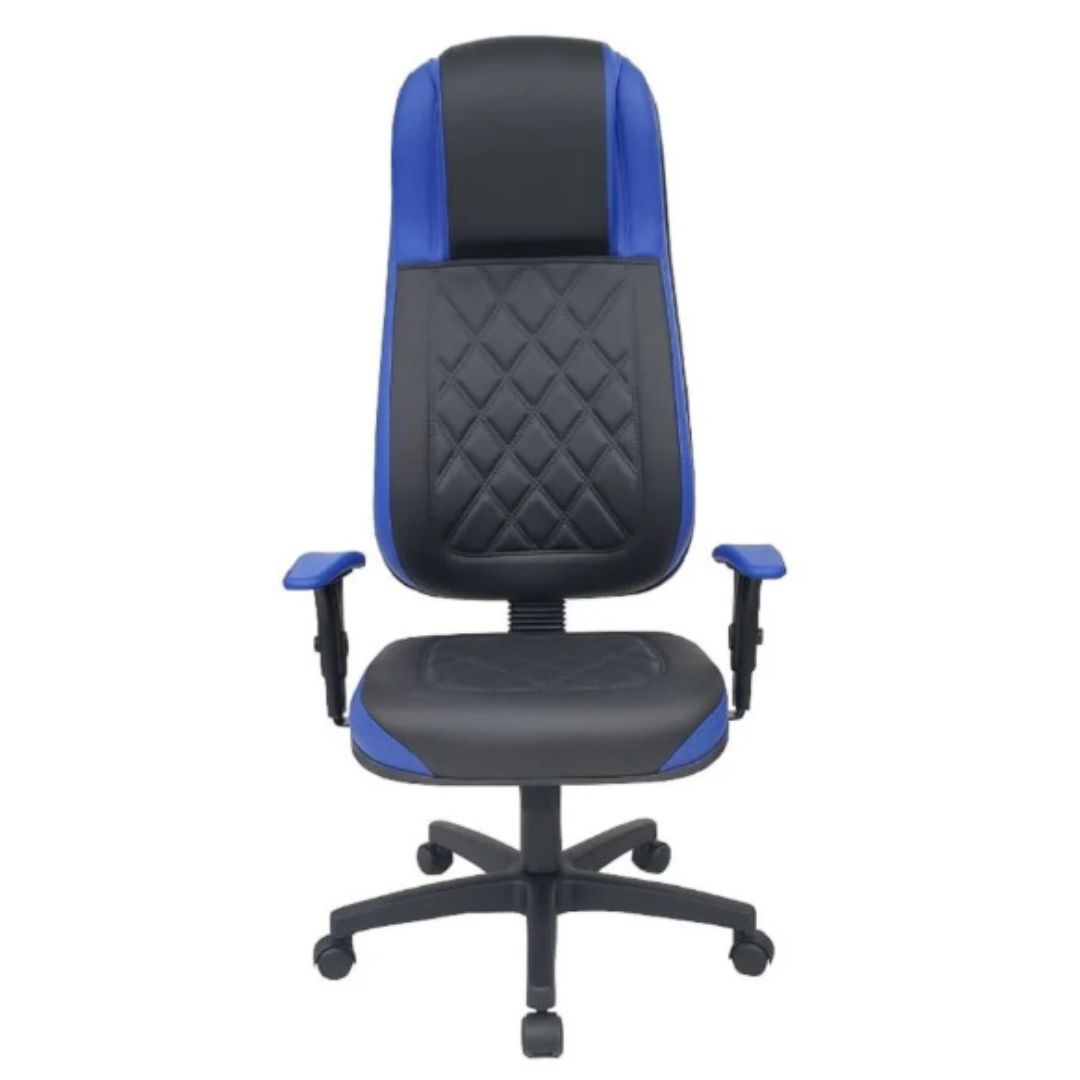 A poltrona conta com um assento com regulagem de altura a gás, braços reguláveis e apoio revestido para maior conforto. Sua base giratória é na cor preta, garantindo um toque moderno ao seu espaço. Com um peso de apenas 15 kg, é fácil de mover.